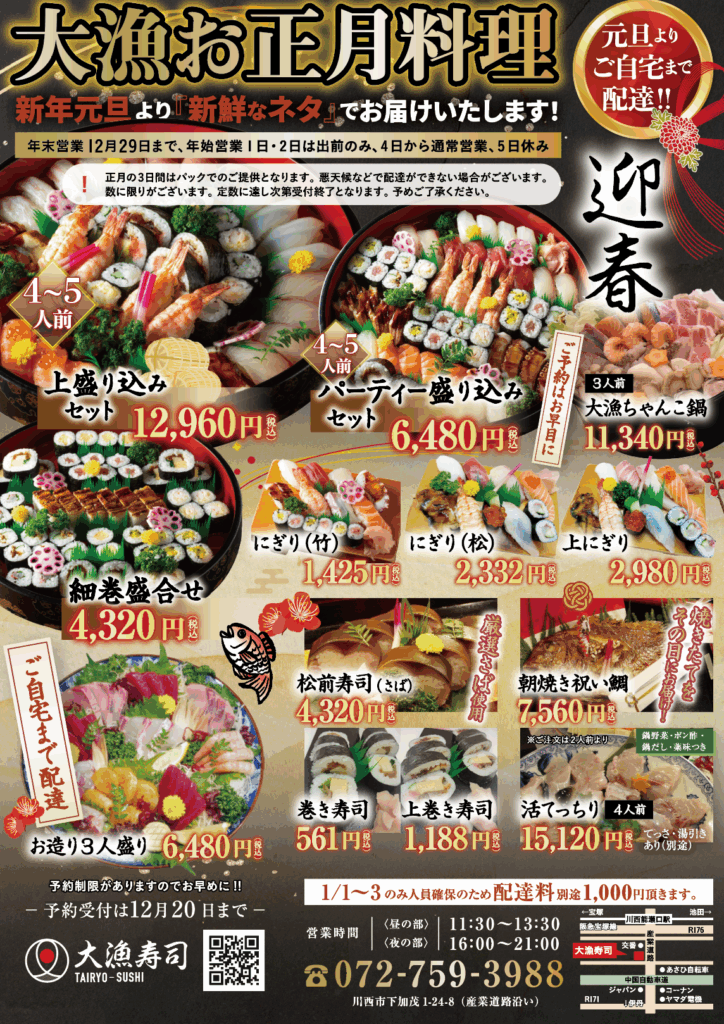 ・1月1日(木)2日(金)は出前のみ【要事前予約】